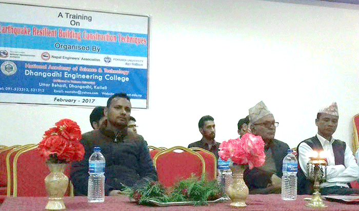 धनगढी इन्जिनियरिङ कलेजमा अन्तिम वर्षमा अध्ययनरत विद्यार्थीहरूलाई बिहीबारदेखि भूकम्प प्रतिरोधात्मक भवन निर्माण विधिबारे सात दिने तालिम समेत सुरु भएको छ ।
