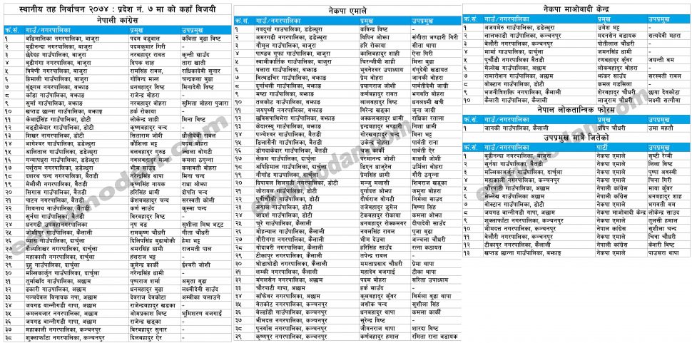 प्रदेश ७ मा नेकपा (एमाले) पहिलो पार्टी, कुन कुन पार्टीले कहाँ कहाँ जिते (सूचिसहित)