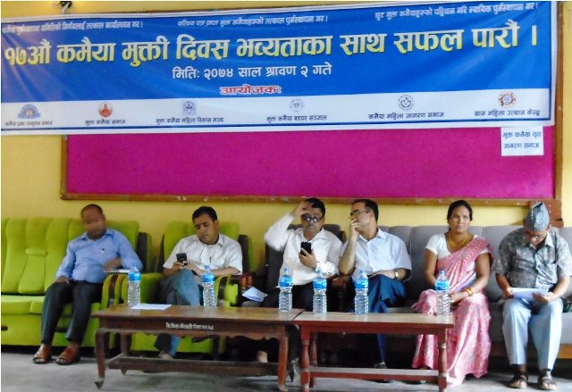 कमैया प्रथा उन्मुलन समाज, मुक्त कमैया समाज, मुक्त कमैया महिला विकास, मुक्त कमैया बडघर सञ्जाल, थारू महिला उत्थान केन्द्र र मुक्त कमैया युवा जागरण समाजको संयुक्त आयोजनामा दिवस मनाइएको थियो ।
