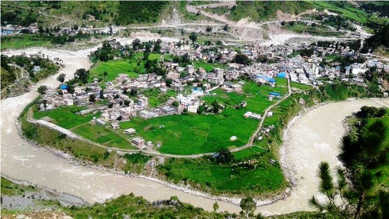 बाढीको जोखिममा रहेको बझाङ सदरमुकाम चैनपुर ।