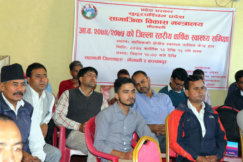 सुदूरपश्चिम प्रदेशको सामाजिक विकास मन्त्रालय, स्वास्थ्य निर्देशनालयको आयोजनामा भएको दुई दिने समीक्षा बैठकमा कैलाली र कञ्चनपुरका २२ वटै पालिकाको स्वास्थ्य समीक्षा गर्ने छलफल भएको छ । स्वास्थ्य निर्देशनालयका स्वास्थ्य निर्देशक डाक्टर गुणराज अवस्थीले आउँदो मंसिर १५ गतेदेखि पालिकास्तरीय स्वास्थ्य समीक्षा गरिने बताए ।