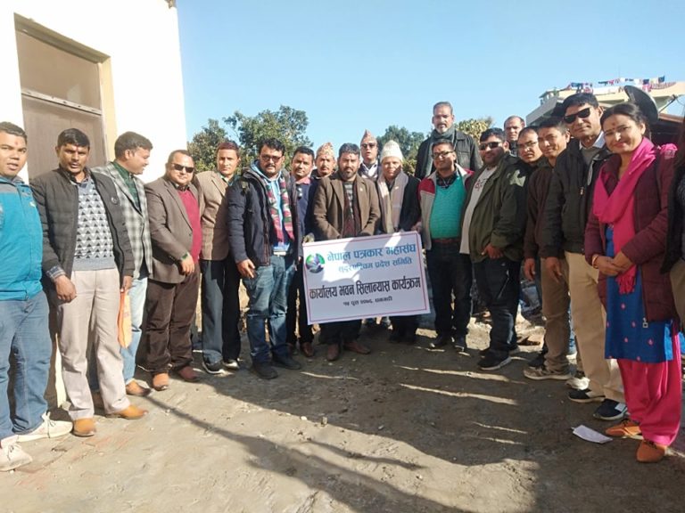 नेपाल पत्रकार महासंघका केन्द्रीय अध्यक्ष गोविन्द आचार्यले मंगलबार एक संक्षिप्त कार्यक्रमबीच भवनको शिलन्यास गरे ।