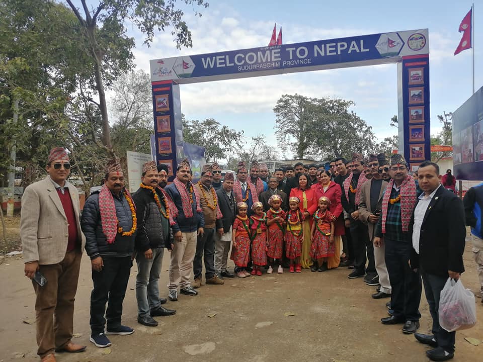 धनगढी उपमहानगरपालिका उपप्रमुख सुशीला मिश्र भट्ट, लायन्स क्लव अफ धनगढी ग्रिन सिटिका पदाधिकारी, कैलाली उद्योग बाणिज्य सघका पदाधिकारी लगायतले भारतीय पर्यटकलाई नेपाली ढाका टोपी लगाएर स्वागत गरे ।