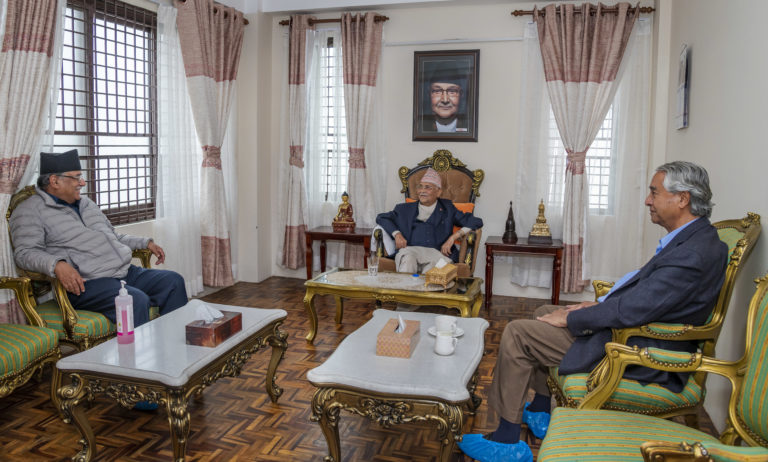 प्रधानमन्त्री ओली, देउवा र प्रचण्डको संयुक्त भेटवार्ता