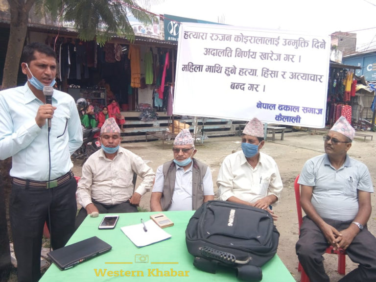लम्की । श्रीमतीको हत्या आरोपमा सर्वस्वसहित जन्मकैद सजाय पाएका पूर्व सशस्त्र प्रहरी नायव महानिरीक्षक (डीआईजी) रञ्जन कोइरालाको जेल सजाय घटाएर रिहा गर्ने सर्वोच्च अदालतको फैसलाका विरुद्ध कैलालीमा विरोध प्रदर्शन भएको छ ।