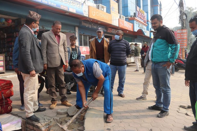 धनगढी । धनगढी उपमहानगरपालिका वडा नम्बर ४ का अध्यक्ष दिपक कुमार थापाले मुख्य सडक बिस्तारका लागि आफ्नो भौतिक संरचना आफैं भत्काएका छन् ।