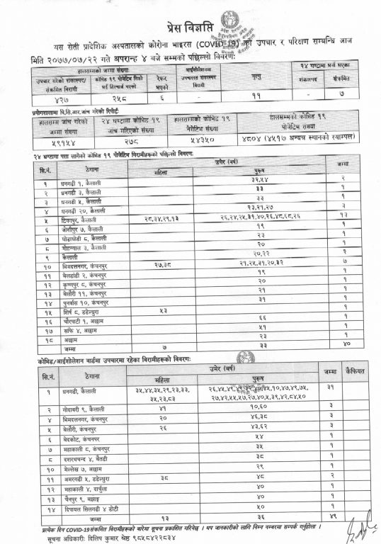 शनिबार दिउँसाे सार्वजनिक गरिएकाे तथ्यांक अनुसार ७ जना महिला र ३३ जना पुरूषमा काेराेना संक्रमण पुष्टी भएकाे हाे ।