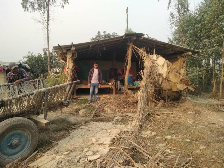 टीकापुर । टीकापुर नगरपालिका वडा नं ५ नुक्लीपुरका राजकुमार चौधरीको घर हात्तीले भत्काइदिएको छ बुधबार राति दुई बजेतिर चौधरीको घर भत्काएको हो । ‘घरमा तीन जना सुतेको थियौ घर हल्लिन थाल्यो,’ राजकुमारले भने, ‘एउटा भित्ता भत्काइसकेपछि अर्को भित्ता भत्काउन थालेका बेला भाग्यौ“, घरको बीचमा भित्ता भएर बाच्यौ“, नत्र ज्यान जाने थियो ।’ गाउले जागेर हल्ल गरेपछि टीकापुर पार्कतिर पसेको हात्ती उज्यालो भैसकेपछि उत्तरतिरको खोटेना सामुदायिक वनतिर लागेको टीकापुर पार्कका इञ्चार्ज अर्जुनबहादुर कुवरले जानकारी दिए ।