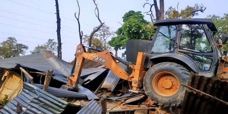 सामुदायिक वनमा बनाइएका अवैध टहरा हटाइयो