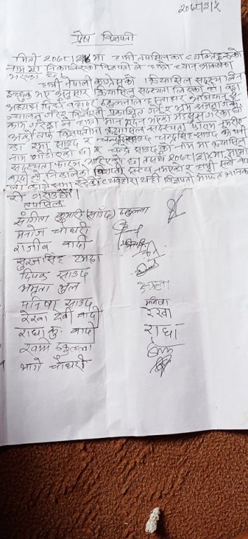 संगीता कुमारी साउँद, ठकुल्ला, राजिव बादी, सुरजसिंह टमट्टा, दीपक साउँद, भागे चौधरी लगायतका ११ जनाले शनिबार संयुक्त रुपमा विज्ञप्ती जारी गर्दै आफूहरु काँग्रेसमै रहेको जनाएका छन् ।