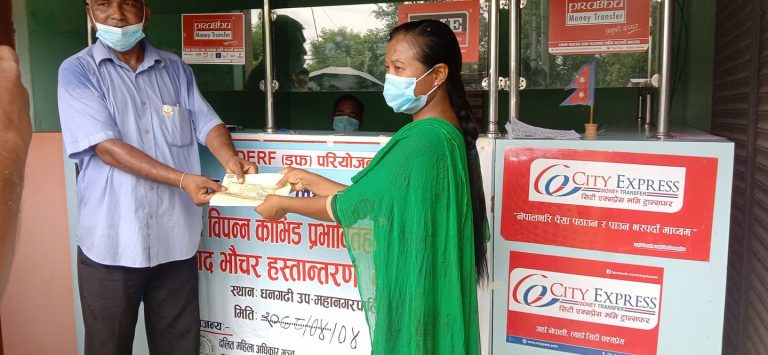सोमबार उनले दलित महिला अधिकार मञ्चको सहयोगमा उनले आइएमइबाट चार हजार पाँच सय रुपैयाँ प्राप्त गरिन । उनले भनिन –‘कोरोना संक्रमणमुक्त त भए तर, अहिले गर्भवति पनि छु । यो अवस्थामा पौष्टिक आहारको आवश्यकता पर्छ । यो रकमले त्यही सामाग्री खरिद गर्छु ।’