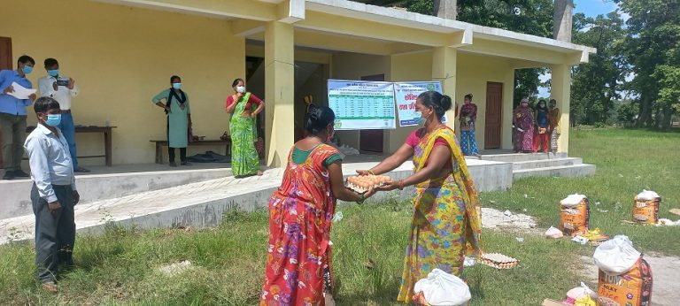 ती परिवारहरूलाई प्रतिपरिवार ३० किलो चलाम, दुई किलो दाल, दुई लिटर खाने तेल, दुई किलो नुन, छपिस सावुन र गर्भवति, सुत्केरी र कोरोना संक्रमित भएको परिवारलाई थप एक किलो चना, एक किलो केराउ, एक किलो राजमा तथा प्रति सुत्केरी तथा गर्भवतिलाई एक एक क्यारेट अण्डा वितरण गरेको संस्थाले जनाएको छ ।