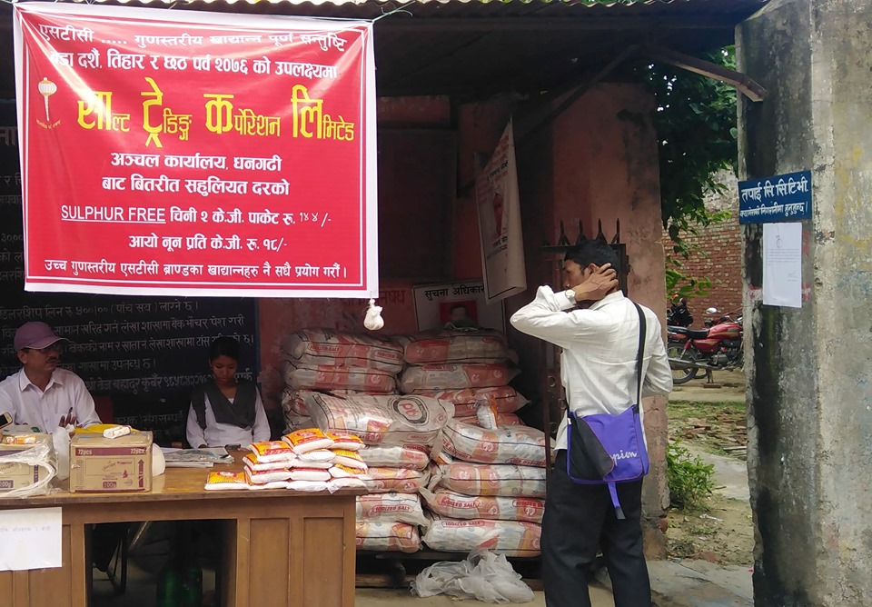 उनले भने, माथिबाटै चिनी आएको छैन, हाम्रो केन्द्रीय कार्यालयमै चिनीको अभाव छ, त्यसैले चिनीबाहेकका अन्य खाद्य सामग्री बिक्री गरिरहेका छौं ।