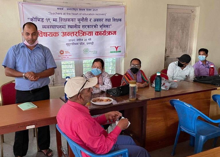 धनगढी / कोभिड–१९ मा शिक्षकका चुनौती र अवसर तथा शिक्षक व्यवस्थापनमा स्थानीय सरकारको भूमिका विषयक अन्तरक्रिया धनगढीमा भएको छ ।