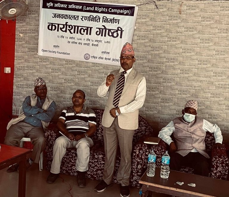 राष्ट्रिय दलित नेटवर्क (आरडिएन) को भूमिअधिकार अभियान, जनवकालत रणनीति निर्माण कार्यक्रमको शनिबार उद्घाटन गर्दे उनले भने, संविधानले दिएको अधिकार कानुन बनाएर स्थापित हुन जरुरी छ । कानुन बनाउदा स्थानीय, प्रदेश र संघले के के अधिकार लिने ऐकिन गर्न सकिन्थ्यो ।