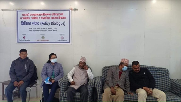 सो अध्ययन द एसिया फाउन्डेसनको सहयोगमा राष्ट्रिय दलित नेटवर्कको अगुवाइमा भएको हो । सो अवसरमा नेटवर्कका संस्थापक अध्यक्ष गणेश विकले यो विस्तृत अध्ययनले उपमहानगर सहितका सरकारी तथा गैरसरकारी पक्षलाई दलित समुदायका लागि आवश्यक कार्यक्रम ल्याउन सजिलो हुने बताए ।