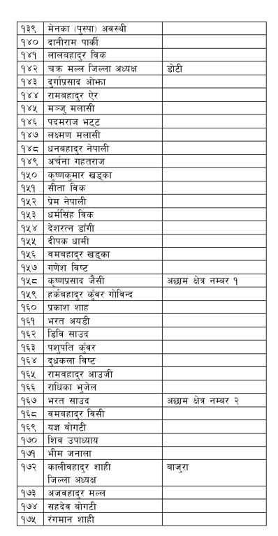 हेर्नुस प्रतिनिधिको नाम सहितको पूर्ण विवरण । यो विवरणमा उल्लेख भएका बाजुरा केही प्रतिनिधिको नाम भने केही फरक पनि पर्न सक्छ ।