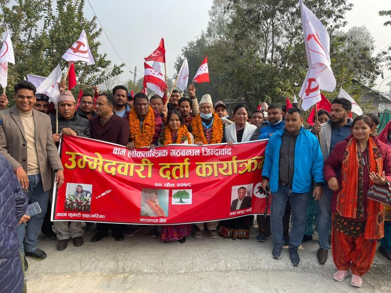 गठवन्धनका उम्मेदवारहरु जलुस सहित उम्मेदवारी दर्ता गर्न गएका थिए । उम्मेदवारी दर्ता कार्यक्रममा समाजवादीका प्रदेश स्थायी समिति सदस्य उर्वादत्त पन्त, अध्यक्ष विक्रमबहादुर शाही, संसदीय दलका नेता दीर्घबहादुर सोडारी, नेपाली काँग्रेसका केन्द्रीय सदस्य नैनसिंह महर, नेकपा माओवादी केन्द्रका केन्द्रीय सदस्य लक्ष्मणदत्त जोशी लगायतका नेताहरुको उपस्थिति थियो ।