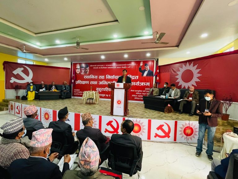 एमालेको केन्द्रीय स्कुल विभाग, स्थानीय तह विभाग र निर्वाचन विभागको संयुक्त आयोजना तथा सुदूरपश्चिम प्रदेश कमिटीको व्यवस्थापनमा प्रशिक्षण तथा अभिमुखिकरण कार्यक्रम आयोजना गरिएको हो ।