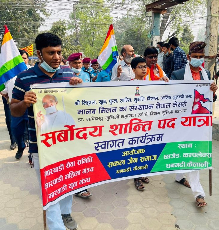 नेतृ राणा र डा.मणिभद्र महाराज एवम् विराज मुनीजी महाराजले कार्यक्रम अघि धनगढीमा पनि सर्वोदय शान्ति यात्रा गर्नु भएको थियो । धनगढीमा सर्वोदय शान्ति यात्रा र स्वागत कार्यक्रम सकल जैन समाजले आयोजना गरेको थियो ।