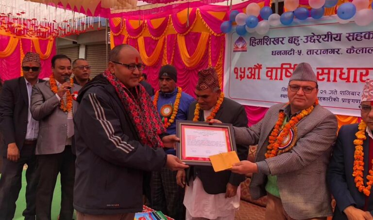 धनगढी/ हिमशिखर सहकारी संस्थाको १५ औं वार्षिक साधारणसभामा अनुमोदन दैनिकका प्रकाशक तथा कार्यकारी सम्पादक प्रकाशविक्रम शाह सम्मानित भएका छन् ।