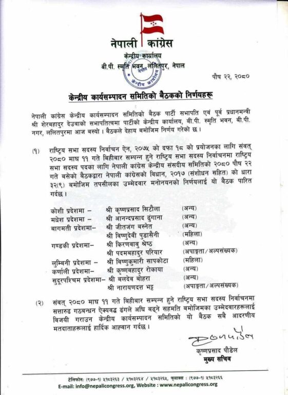 काँग्रेसले छान्यो राष्ट्रिय सभा निर्वाचनका उम्मेदवार