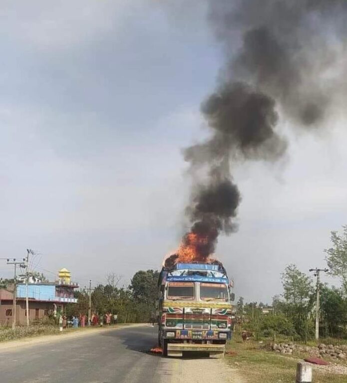 लाईटर, खुुर्सानी, औषधि र बच्चाको डाइपर बोकेको ट्रकमा आगलागी भएको केही समयमै दमकल पुगेर आगो नियन्त्रण गरिएको थियो ।
