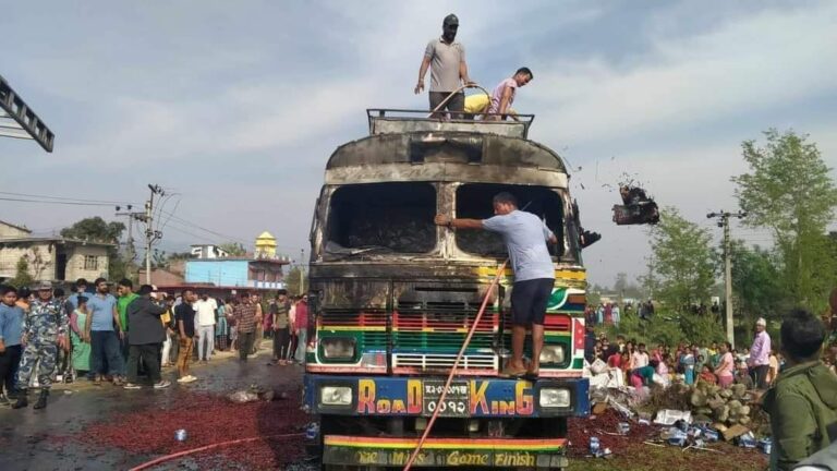समयमै दमकल पुग्दा, गुडिरहेको ट्रकको आगलागी नियन्त्रणमा
