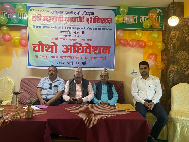धनगढीमा शनिबार भएको सेती महाकाली ट्रान्सपोर्ट एशोसिएसनको आठौ साधारण सभा र चौथो अधिवेशनमा ट्रान्सपोर्ट व्यवसायीहरुले सो निष्कर्ष निकालेका हुन ।