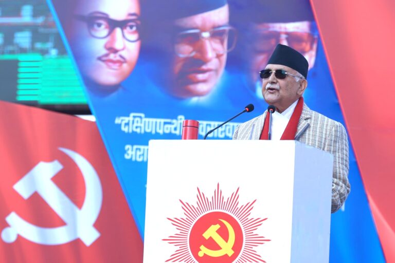 काठमाडौं/ प्रधानमन्त्री एवं नेपाल (एमाले) का अध्यक्ष केपी शर्मा ओलीले अनेक षड्यन्त्र र भ्रम चिरेर आफूहरु विकास, समृद्धि र सुशासनको संकल्प पूरा गर्ने बाटोमा ढुक्कका साथ अघि बढेको बताएका छन्।