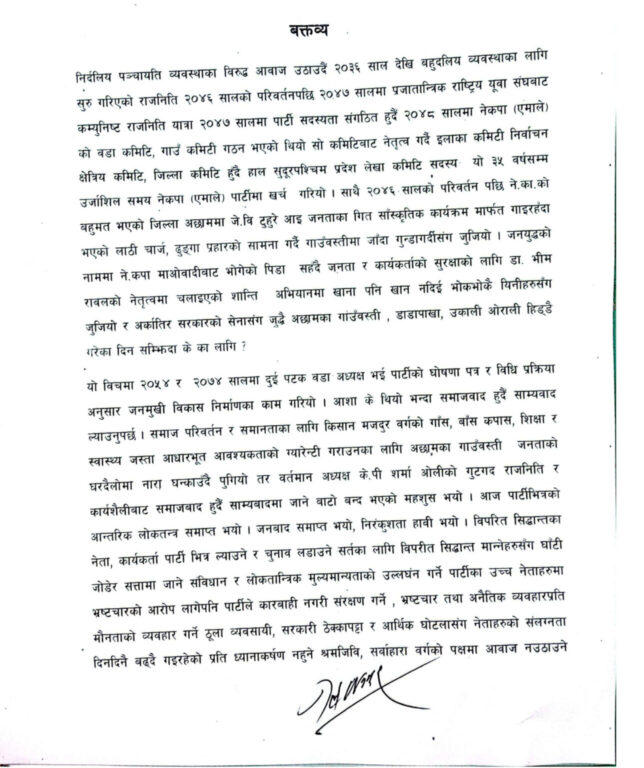 डा. रावललाईसंगठित सदस्य समेत नरहनेगरी निष्काशन गरेपछि आफूहरुले एमाले छोडेको उनीहरुले बताएका छन् ।