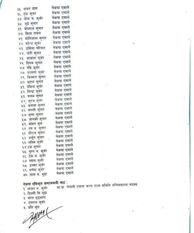 एमाले लगायतका विभिन्न पार्टी परित्याग गर्नेको सूची निम्न अनुसार छ ।