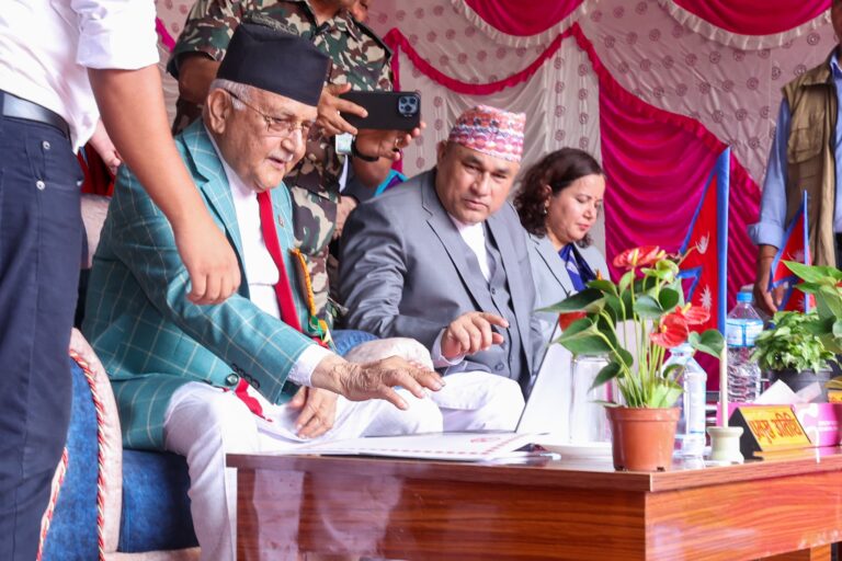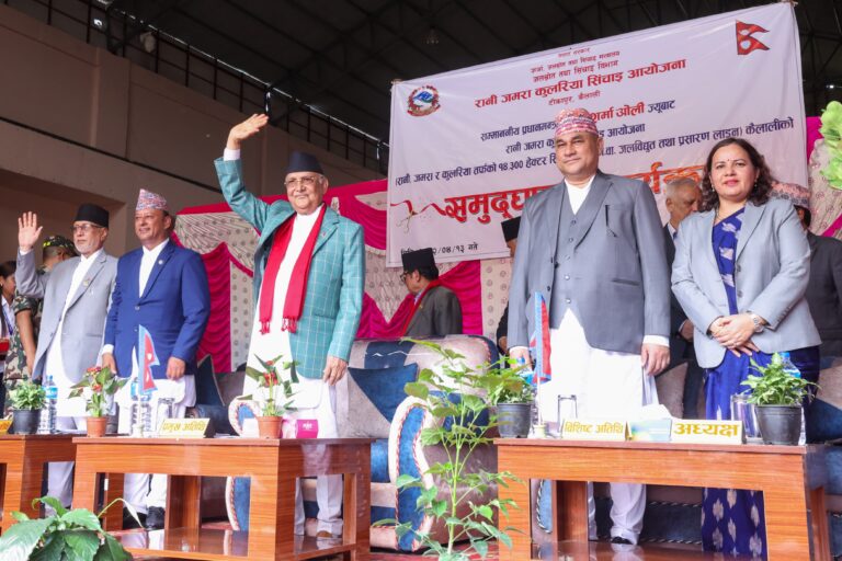 प्रधानमन्त्री केपी शर्मा ओलीबाट रानी जमरा कुलरिया सिंचाइ आयोजना अन्तर्गत निर्माण सम्पन्न भएको रानी जमरा र कुलरिया तर्फको १४,३०० हेक्टर क्षेत्रफल सिंचाइ तथा ४.७१ मेगावाट क्षमताको विद्युतगृहको उद्घाटन र सभालाई सम्बोधन । तस्बिर : आशिष पौडेल, प्रधानमन्त्रीको सचिवालय ।