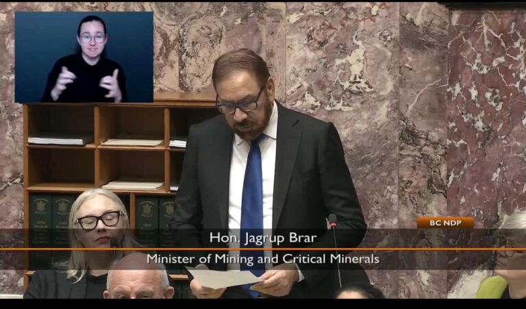 ब्रिटिस कोलम्बिया प्रान्तिय सरकारका खनिजमन्त्री जग्रुप बरार प्रान्तिय सभामा बोलेर नेपाली समुदायलाई स्वागत गर्दे