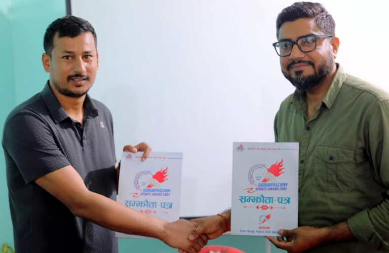 मुख्य प्रबद्र्धन सम्बन्धी सम्झौतापत्रमा सुदूरपश्चिम प्रदेश खेलकुद परिषदका सदस्य सचिव दीपकवहादुर सिंह र आयोजक नेपाल खेलकुद पत्रकार मञ्च कैलालीका अध्यक्ष प्रदीप पाठकले हस्ताक्षर गरेका छन् ।
