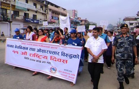 धनगढी । मानव बेचविखन तथा ओसारपसार विरुद्धको ११ औं राष्ट्रिय दिवस मंगलबार धनगढीमा प्रभातफेरी र
