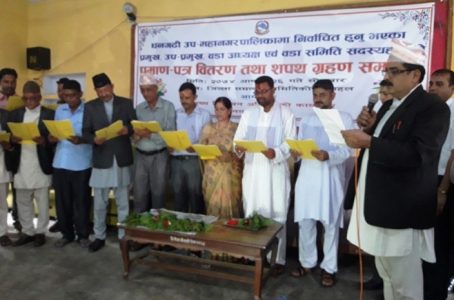 धनगढी । धनगढी उपमहानगरपालिकाका नवनिर्वाचित प्रमुख (मेयर), उपप्रमुख (उपमेयर), वडाध्यक्ष तथा सदस्यहरूले सोमबार पद तथा