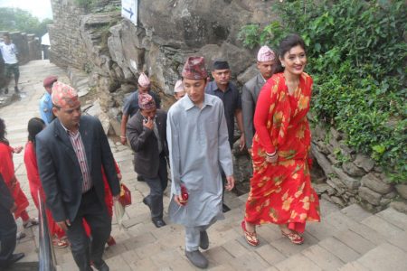 गोरखा । पूर्व राजपरिवारको कुलदेवता मानिने गोरखाकाली मन्दिरको हिमानी शाह, उनका छोरा हृदेन्द्र र छोरीहरुले