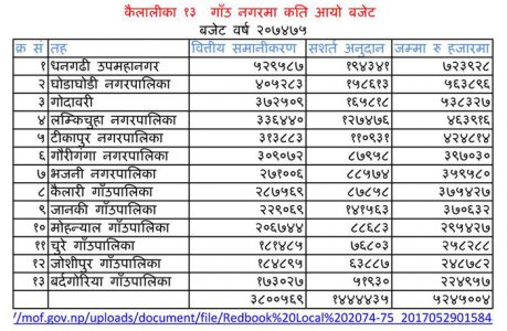 धनगढी । नयाँ बजेट व्यवस्था अनुसार आर्थिक वर्ष २०७४/७५ मा कैलालीका स्थानीय तहले २२ देखि