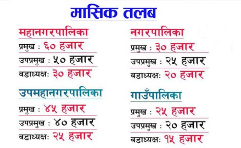 काठमाडौं । स्थानीय तहका प्रमुख, उपप्रमुख र वडाध्यक्षले मासिक तलब पाउने भएका छन् । संघीय