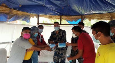 धनगढी । नेपाल भारत वर्ल्ड डेभलपमेन्ट फोरम नेपालले सीमा खटिएका सुरक्षाकर्मीहरुलाई स्वास्थ्य सामाग्री वितरण गरेको