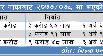 धनगढी । कैलालीको त्रिनगर भन्सार नाकाबाट चालु आर्थिक वर्षको पहिलो दुई महिनामै साढे तीन अर्ब