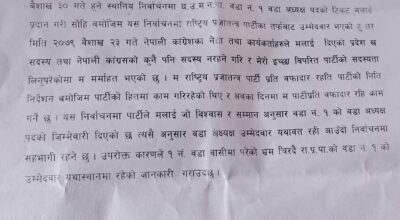धनगढी । धनगढी उपमहानगरपालिका वडा नम्बर ११ को नेपाली काग्रेंस वडा अध्यक्षसहित पदाधिकारीका उम्मेदवारीले १६