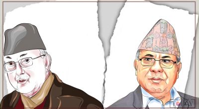 काठमाडौं / नेकपा एमाले विभाजनपछि पहिलो पटक एउटै मञ्चमा एमाले अध्यक्ष केपी शर्मा ओली, नेकप