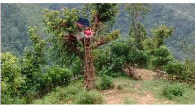 खोटाङ / खोटाङको हलेसी तुवाचुङ नगरपालिका-१० अर्खौले नवलपुर सिम्लेका छात्र धनकुमार मगर अनलाइन कक्षाबाट पढ्न रुखमा