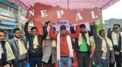 धनगढी/ नेपाल विद्यार्थी संघद्वारा सञ्चालित “चिनौ सिमाना, जोगाऔं माटो अभियान” अन्तर्गतको “कोरौं नेपालको वास्तविक नक्सा”