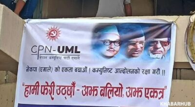 “ओलीविहीन ब्यानर: एमाले कार्यालयमा नयाँ सन्देश”